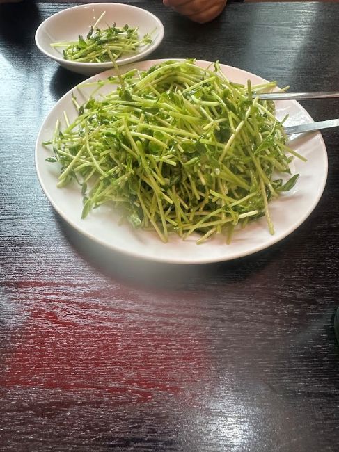 这家的炒豆苗也与美国中餐馆不同。美国多炒尖上嫩叶,这里却取中段茎梗,清新爽脆,口感全然不同。