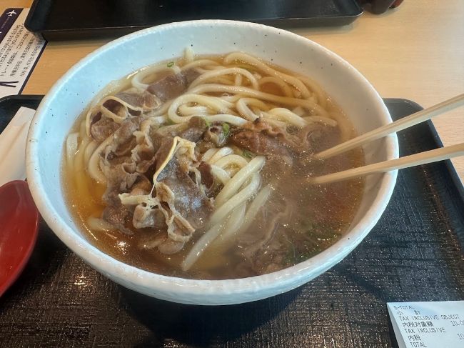 我们点了一碗海鲜乌冬面,一碗日式“棒棒鸡”面。味道尚可,却终究比不上前一天中午那碗担担面——那份麻辣鲜香,毕竟是故乡的滋味。
