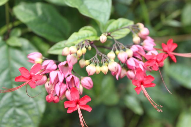 “红萼龙吐珠”,又名红花龙吐珠、美丽龙吐珠,花萼鲜红如龙首,花冠深红探出,雄蕊细长突出,状若“红龙抬头吐珠”,极富活力与张力。