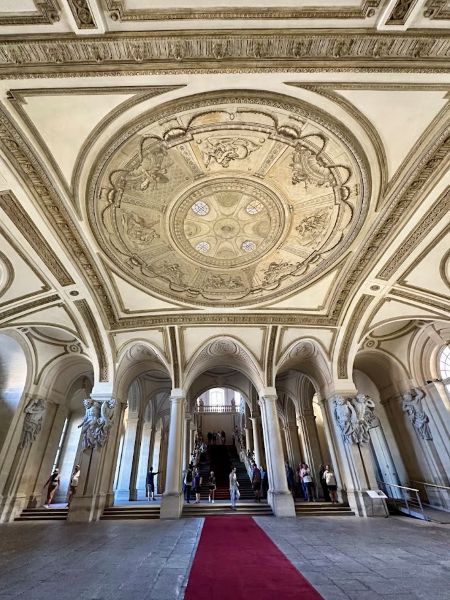 走进皇宫,人们仿佛穿越到18世纪。皇宫是巴伐利亚最杰出的巴洛克建筑之一。照片中最让我难忘的是大楼梯厅(Treppenhaus),那幅由意大利画家提埃波罗(Tiepolo)绘制的巨型天花板壁画,色彩鲜艳,描绘了四大洲的寓意场景。站在楼梯下抬头,照片里的光影勾勒出壁画的立体感,让人叹为观止。