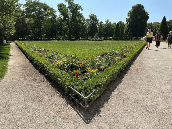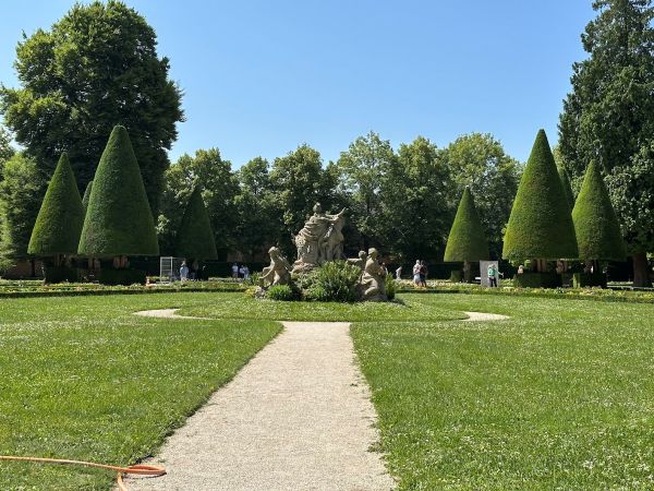 照片中,阳光透过高大的树木洒在修剪得精致无比的花坛上,几何形状的灌木和五彩缤纷的花卉排列得如同艺术品,仿佛在诉说巴洛克时代对秩序与美的追求。我记得当时站在花园入口,空气中弥漫着青草和花香,远处还有喷泉的潺潺水声,令人心旷神怡。