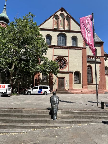 紧邻教堂,照片带我走进大教堂博物馆(Museum am Dom)。入口处的现代雕塑与中世纪石墙对比鲜明,馆内展出从10世纪到21世纪的700件艺术品,按主题(如“希望”“死亡”)陈列,古今交融。
