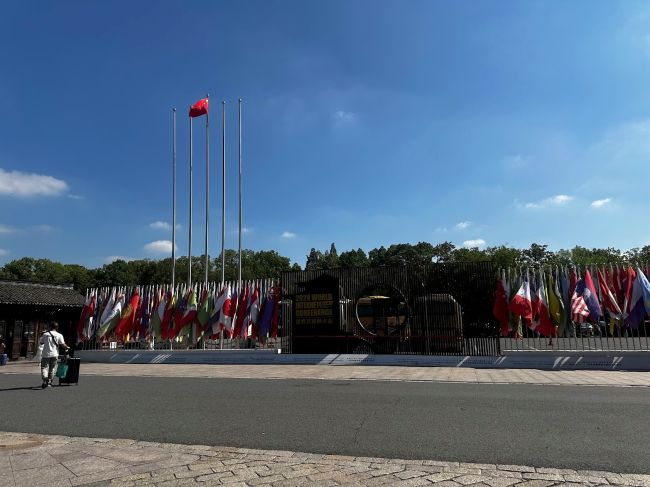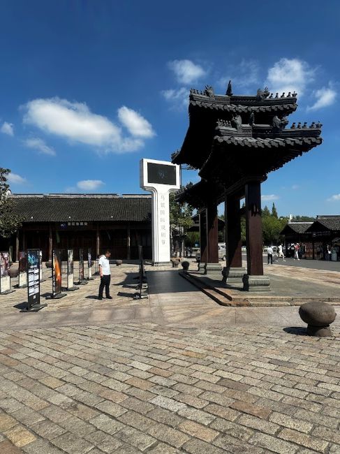 大门对面的广场上,一溜各国的国旗,中国的五星红旗傲然高高再空中飘扬。原以为这就是代表国际戏曲节,仔细一看,上面写的是2024“世界互联网大会”。如果说,因为乌镇有茅盾,有木心,跟文学艺术(戏曲)挂的上钩,那么跟互联网又有什么关系?