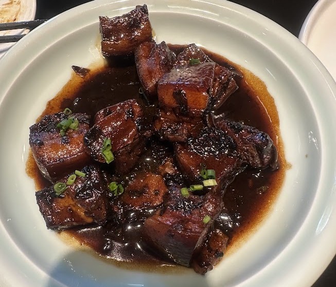 红烧肉是第一个端上来的。方方正正切块,颤巍巍地躺在褐红的汁水里,一筷子下去,肥而不腻,入口即化,只剩肉香在舌尖打着旋儿;瘦肉部分又带着微微的嚼劲,被糖色锁住了鲜甜,像把整个秋天都炖进了这口肉里。