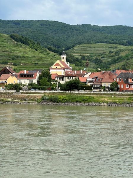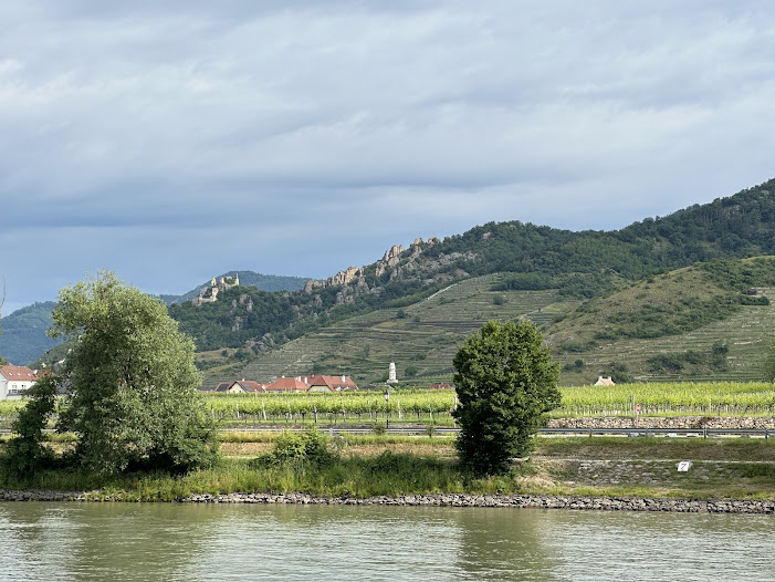 修道院外是瓦豪谷最后的葡萄园,有小山卫士般守护。河滩的鹅卵石在阳光下闪耀,我驻足拍摄修道院倒影,河风拂面,内心充满平静。这片土地的每一寸都诉说着历史与自然的对话。