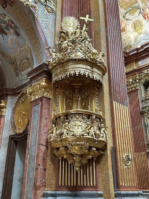 走进修道院教堂,金碧辉煌的镀金祭坛和壁画如天堂画卷,管风琴的低鸣让我心潮澎湃。