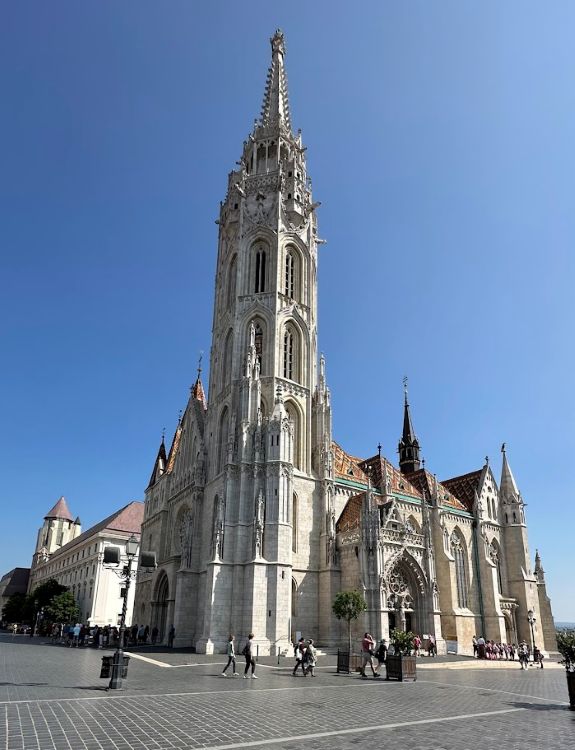 紧邻其后的,是马加什教堂(Church of Our Lady)。马加什教堂的哥特式尖塔高耸入云,彩色瓷砖屋顶在阳光下闪耀斑斓。教堂始建于1015年,几经修葺,散发着历史的光辉。走进教堂内部,只见四周金碧辉煌,彩绘玻璃洒出斑驳光影,仿佛置身神圣的时空。