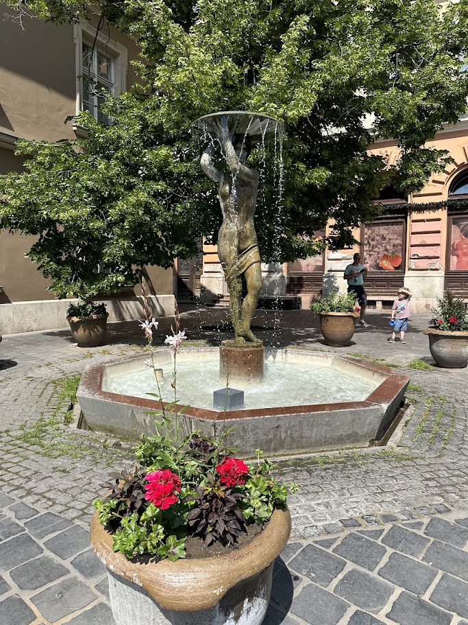 离开童话般的渔人堡下山,途中经过涌泉女神喷泉(Fontana della Ninfa)。烈日炎炎,涌泉女神铜像在树荫中举托水盘,泉水如帷幕流泻,滴入八角形水池,发出悠缓水声,给游人带来身心的清凉。周围花木环绕,为古老城墙增添一丝灵动的仙气。