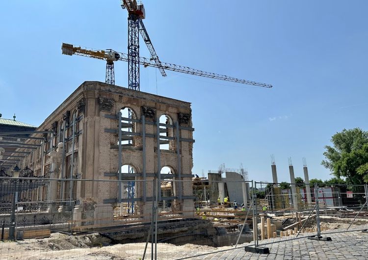 城堡中总统府紧邻布达皇宫,是一栋19世纪典雅的新古典主义宫殿。匈牙利总统是国家元首,主要承担礼仪性职责,而总理才是真正掌握行政权力的领导人。距总统府约百米,是总理办公厅,原为修道院,2019年改造为总理办公室,现在正在维修中,远处可见巨大的吊车在云中穿梭。