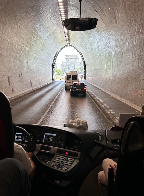 返程途中,大巴缓缓驶入一座嵌入山体的古老石拱隧道,灯光在潮湿的石壁上投出斑驳光影,如同进入时光的隧道,回声在耳边低语。隧道尽头豁然开朗,佩斯的天际线已在暮色中一点点闪亮,那座横跨多瑙河的链子桥,在暮霭与灯火交织的背景中缓缓浮现。山上山下,两重天地。