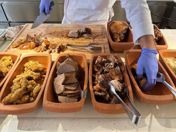推着手推车回到邮轮,先进舱解决“民生问题”——一顿热腾腾的德国猪肘(Schweinshaxe)配酸菜(Sauerkraut),再来杯本地Riesling,果酸与肉香瞬间洗去一天的尘土与酸痛。