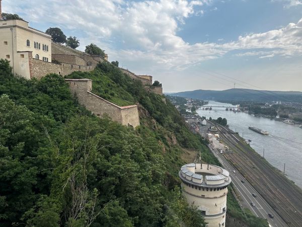终点站,便是这座占地118公顷的19世纪普鲁士要塞怀抱:建于1817-1828年(拿破仑战争后重建),曾是欧洲最强防御工事,如今转型为博物馆群与青年旅舍。缆车坡道无障碍,推车上山轻松,这趟“临时加戏”不只解乏,还把河畔的尘土升华为山巅的宁静。从邮轮的摇曳,到这里的稳固,科布伦茨如一本层层翻开的书,等待最后的章节。