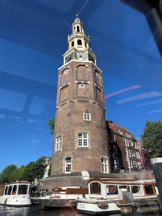 游船缓缓驶过一座塔楼——蒙特尔巴斯塔(Montelbaanstoren)。这座塔始建于中世纪,最初是守望用的瞭望塔,后来被改建为钟楼,负责警示市民火灾或敌袭。据说塔上的钟楼报时经常出错,搞得水手们一头雾水,因此人们戏称它为“傻杰克”。然而,尽管钟声混乱,它那雅致挺拔的身姿,倒映在安静的运河之中,却是许多画家笔下钟爱的风景。相传伦勃朗年轻时常在此写生,这座塔也常出现在他的素描本里。