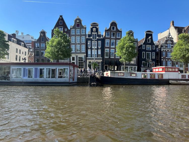 再往前,迎面而来的是大家熟知的“跳舞的房子”(Dancing Houses)。它们依水而立,楼身微微倾斜,仿佛在随水波轻轻摇摆。尤其是绅士运河(Herengracht)与王子运河(Prinsengracht)沿岸的那些老宅,多建于十七世纪,因地基是木桩打入沼泽而成,随着时光与水位的变化,屋体渐渐歪斜,却依然屹立不倒。