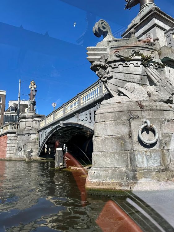 在这三条核心运河之外,游船带着我们驶入了一条安静得近乎私密的支流——修士运河(Reguliersgracht)。这条运河因其七座拱桥连环成线而闻名,听说夜晚灯火点亮时,桥灯与倒影交相辉映,宛如明信片中的一幕。这里是摄影师和恋人们最爱的角落,也是城市温柔的一面。