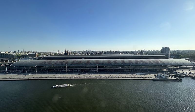 途中路过阿姆斯特丹中央车站——荷兰最重要、最繁忙的铁路枢纽之一。它不仅是交通中心,更是城市的象征与地标。由皮特·考伊佩尔斯设计的新文艺复兴式建筑宏伟典雅,红砖墙体、尖顶钟楼与装饰性风向标,诉说着荷兰黄金时代的荣光。