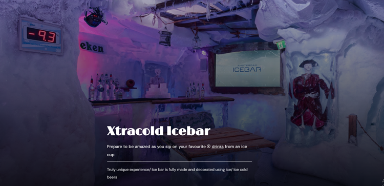 游客可穿上提供的保暖外套,手握冰杯饮用鸡尾酒、喜力啤酒或橙汁,体验“冰封世界”的独特氛围。