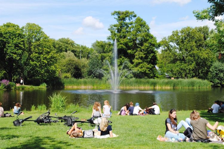 冯德尔公园是阿姆斯特丹最大的城市绿地,邻近博物馆区,以其湖泊、雕塑与露天剧场闻名。游客与市民在草坪上嬉戏、野餐、骑行,呈现出一幅悠闲生活图景。