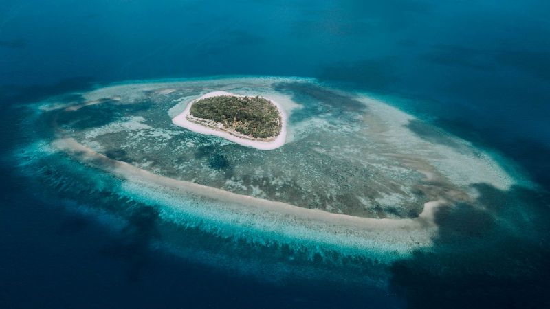这座离宫选址于一片静谧的礁湖中,四周被形如沉睡巨兽的珊瑚环绕。澄澈的海水倒映着蔚蓝的天空,仿佛天地之间的一块净土。
