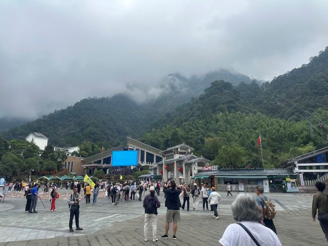 虽然是过了国庆长假,上山的游客还是不少。我们排了好长的队,等缆车上山。