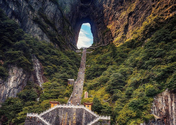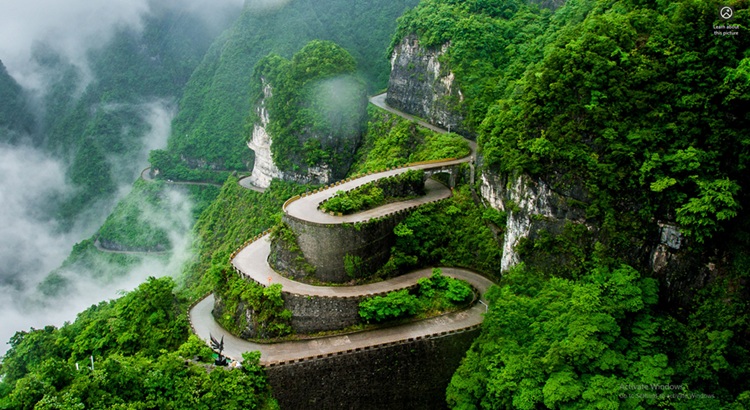 儿时读民间故事,常常读到“翻过九十九座山,淌过九十九道河”的句式来形容遥远艰辛的路途。却不曾想到,现实中的张家界,竟真有一条“通天大道”——全长约7英里,盘旋而上,连缀着99个急转弯,直通天门山之巅。